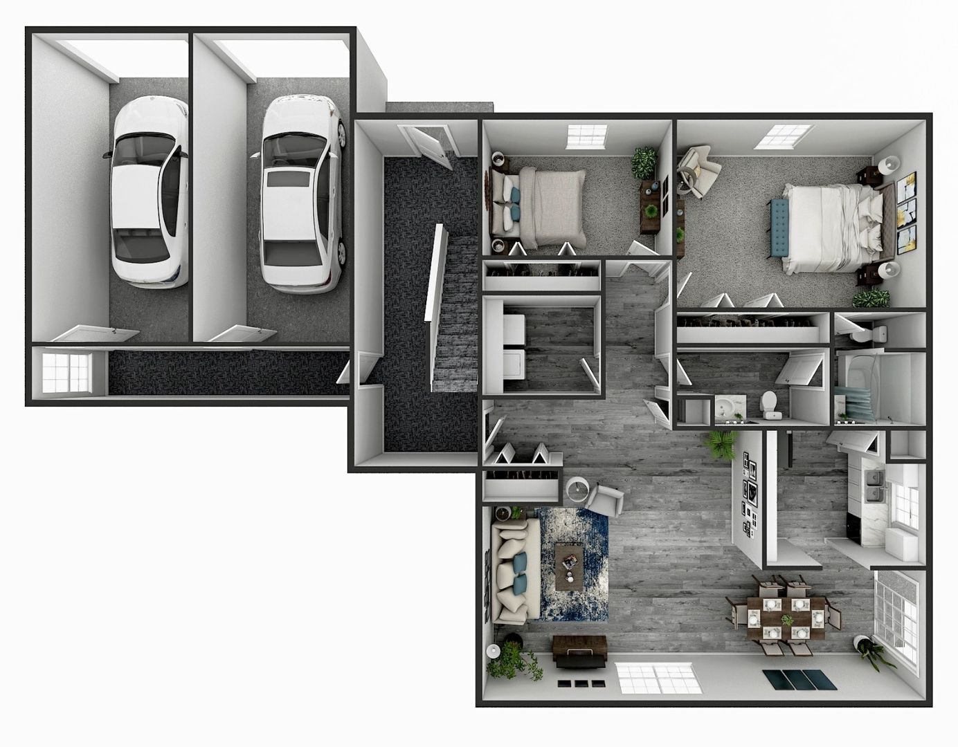 At Hunter’s Pond, we offer a variety of unique floor plans to suit any lifestyle. Our two-bedroom apartment homes are newly renovated with the finest modern finishes available. Start your day with ample morning light and birds chirping and finish it with a home-cooked meal prepared in your fully equipped kitchen.